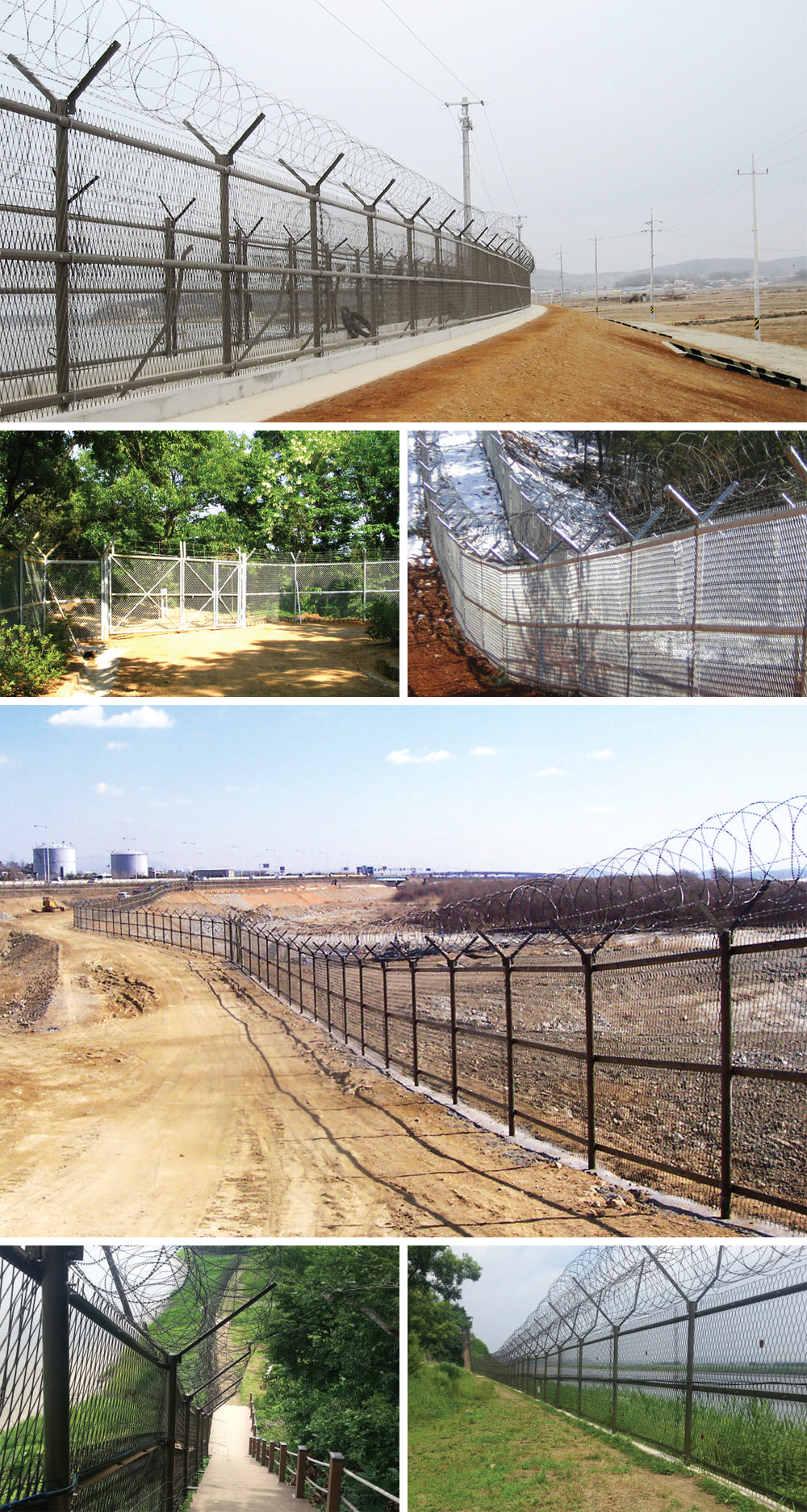 다음 경계용 휀스 군부대용 (조립식-KS규격) 제품소개 경계를 목적으로 군부대, 공장, 해안, 산악지대 등에 설치합니다. 제품용도 군사시설, 관공서, 공항, 항만, 유류 보관창고, 위험물 취급소, 전기시설 등 제품특징 외부로부터 보안 방범이 요구되는 곳에 설치하여 외부 침입이 불가능하며, 내부로부터는 외부 관찰이 용이한 제품으로 튼튼함과 안전성, 보안성이 장점입니다.
